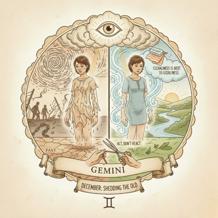 Your motto during the month of December is 'Cleanliness is next to godliness', which means that you may realize that a good person such as yourself cannot be in a situation like this or surrounded by a person like that and not be affected by it yourself. This person or situation has likely made you a lesser person than who you used to be or might cause you to become a lesser person if you were to stay.