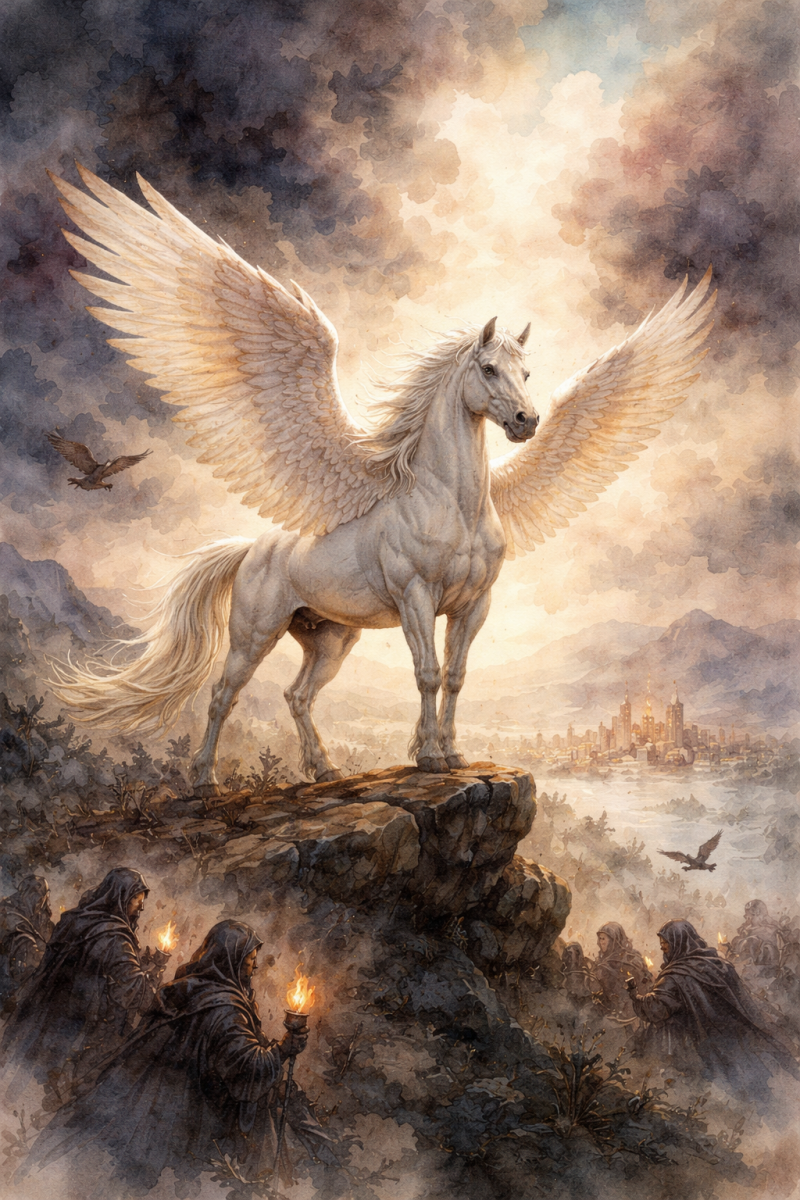 You are not prideful nor arrogant or seeking to elevate yourself to godhood. You will be a humble outcast instead, a winged horse that cannot be tamed instead of a winged figure. Even though there are oracles giving advice on how to slay you or capture you, and there are those who are seeking to sit on your back to ride you into battle and slay enemies in your name.